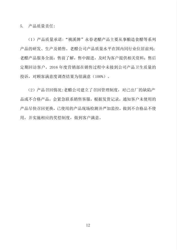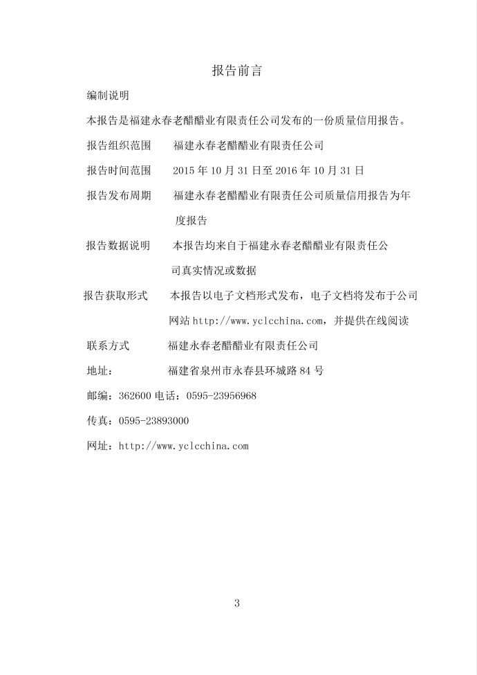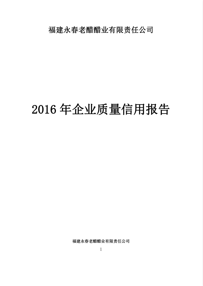 福建永春老醋醋業(yè)有限責(zé)任公司2016年企業(yè)質(zhì)量信用報(bào)告